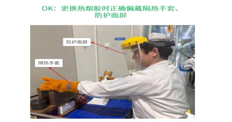 根據(jù)企業(yè)需求,識別安全作業(yè)時是否違規(guī)未穿戴防護(hù)裝置現(xiàn)存問題點(diǎn):更換熱熔膠時,人員有時未按規(guī)范操作,易發(fā)生安全隱患,需現(xiàn)場語音提示并將該事件記錄解決方案:攝像機(jī)部署在工位上,識別人員手部有無佩戴隔熱手套,頭部有無佩戴防護(hù)面罩,若無觸發(fā)告警